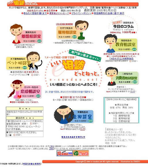崎田自身は相談対応はせず運営に専念し、恋愛、離婚、占い、雇用、ペット、人生など、いろいろな専門の先生方にご相談対応していただくサイトでした。